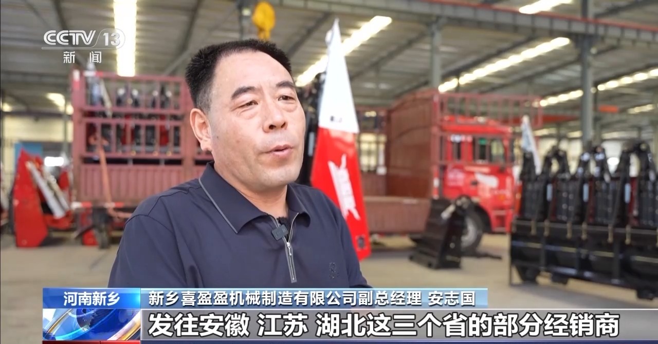 新鄉喜盈盈機械制造有限公司副總經理 安志國:發往安徽、江蘇、湖北這三個省的部分經銷商。這幾年國家高標準農田建設,老百姓的需求比以往大一些。